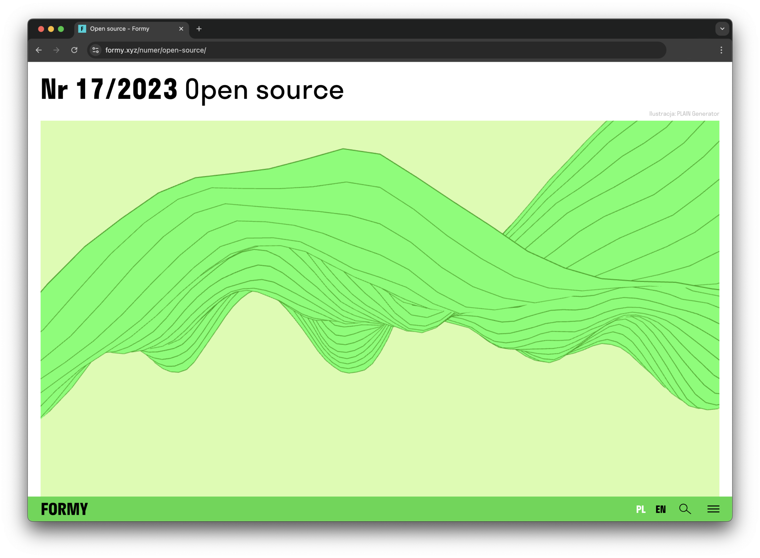 okładka pisma „Formy” wygenerowana przy pomocy narzędzia PLAIN Generator