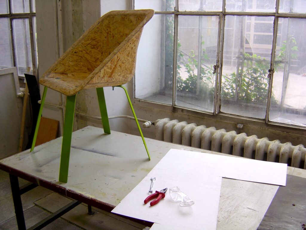 krzesło z prasowanych wiórów drzewnych