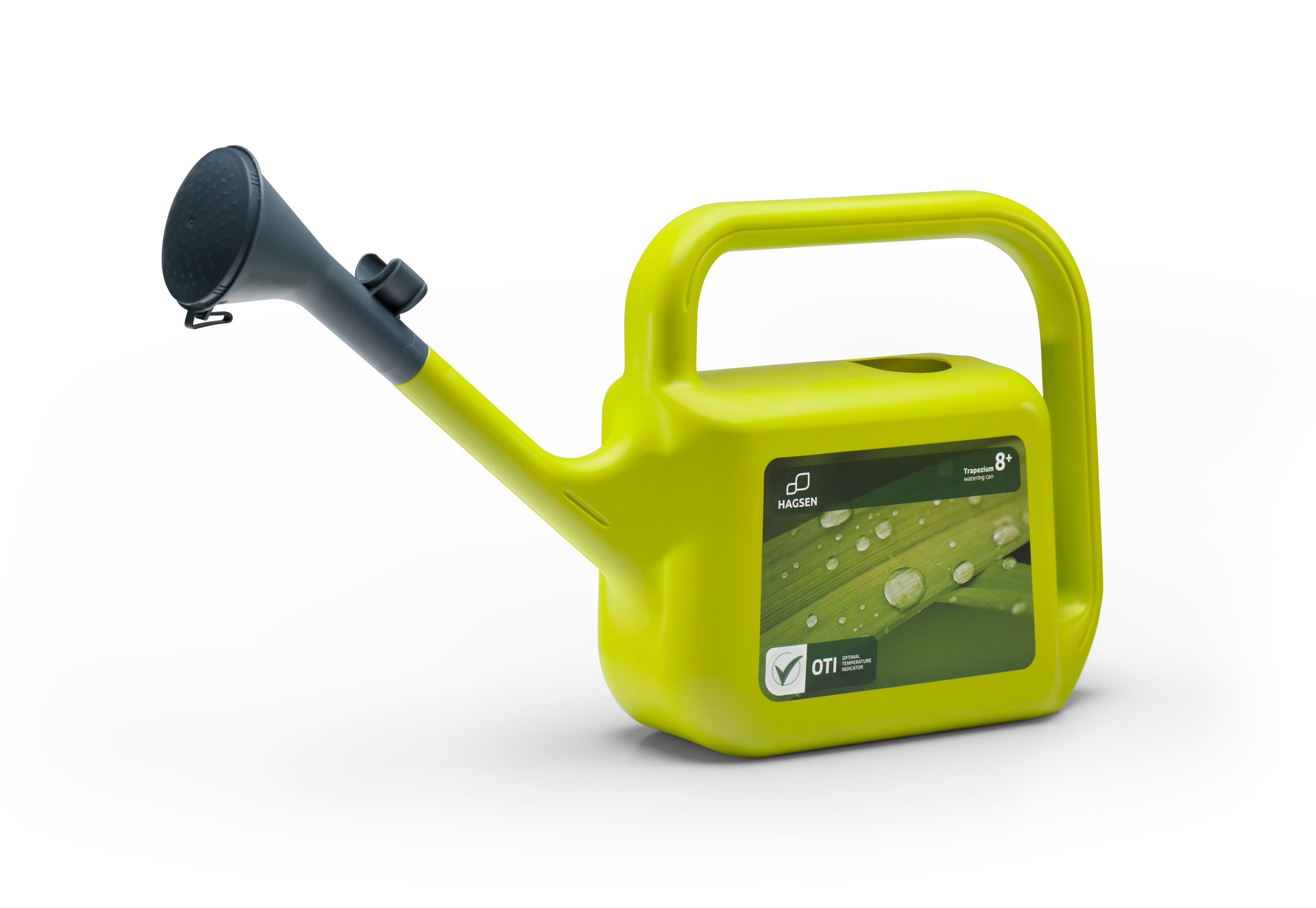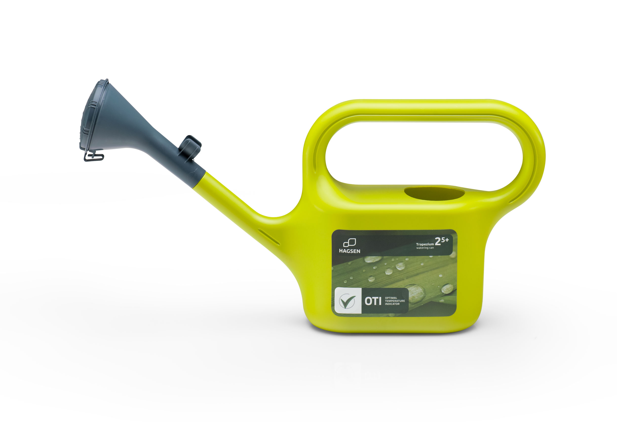 Seria konewek Trapezium o pojemnościach: 1.5 / 2.5 / 5 / 8 / 10 / 12 l formowanych rozdmuchowo. Ergonomiczny uchwyt do przenoszenia i podlewania daje możliwość przesuwania dłoni i płynnej regulacji środka ciężkości przechylonej konewki. Otwierane sitko pozwala na wygodne nalewanie wody. Etykiety IML aplikowane w procesie rozdmuchu posiadają wskaźnik optymalnej dla podlewanych roślin temperatury wody.